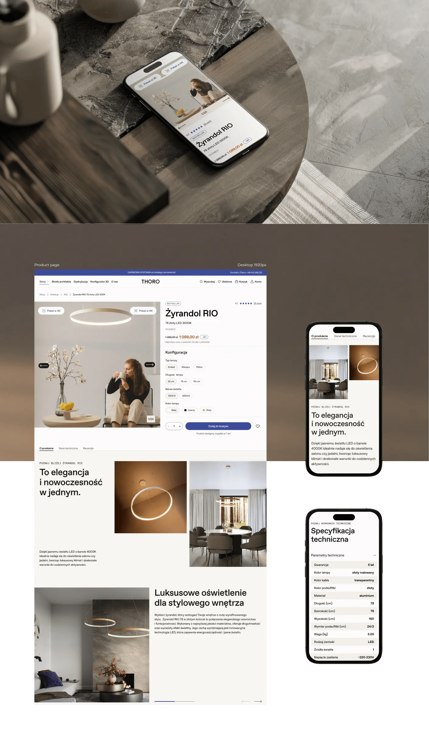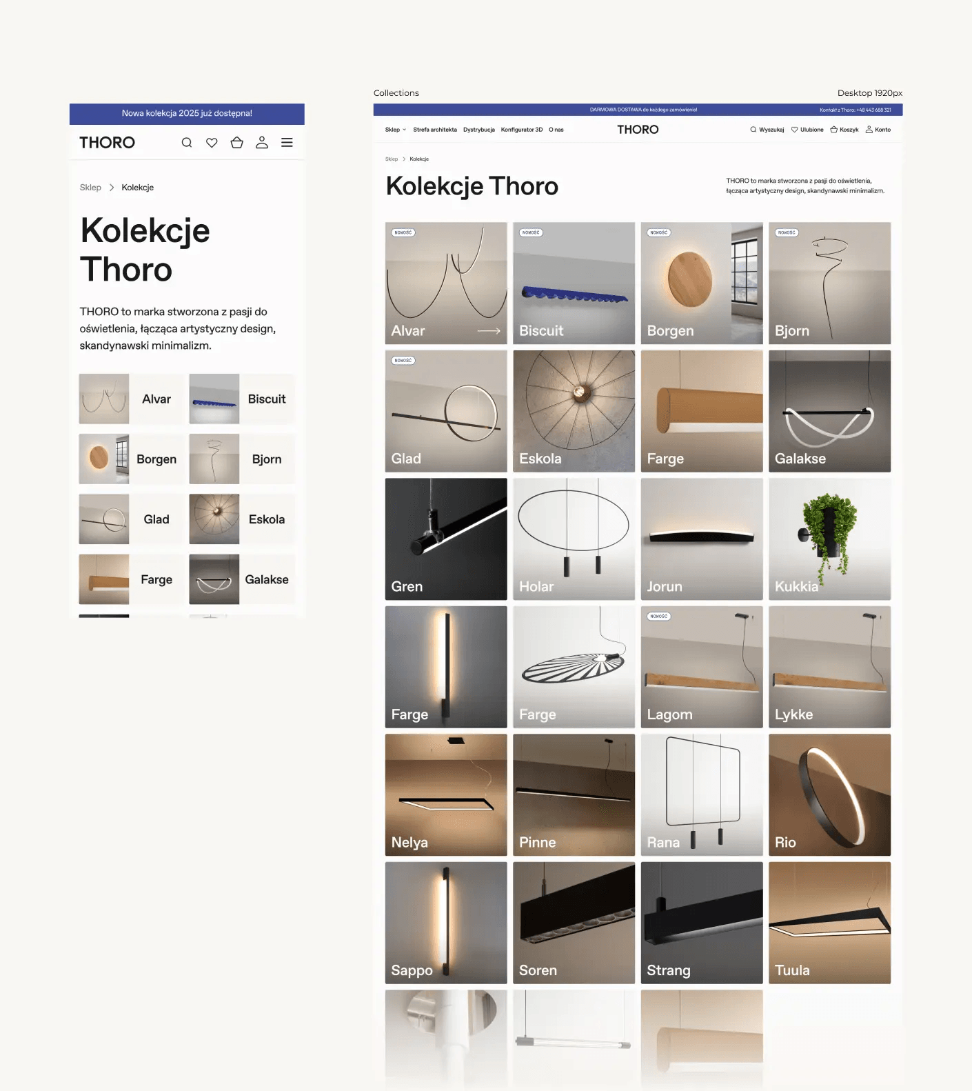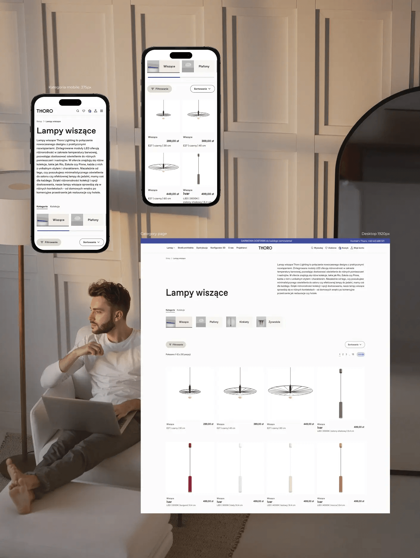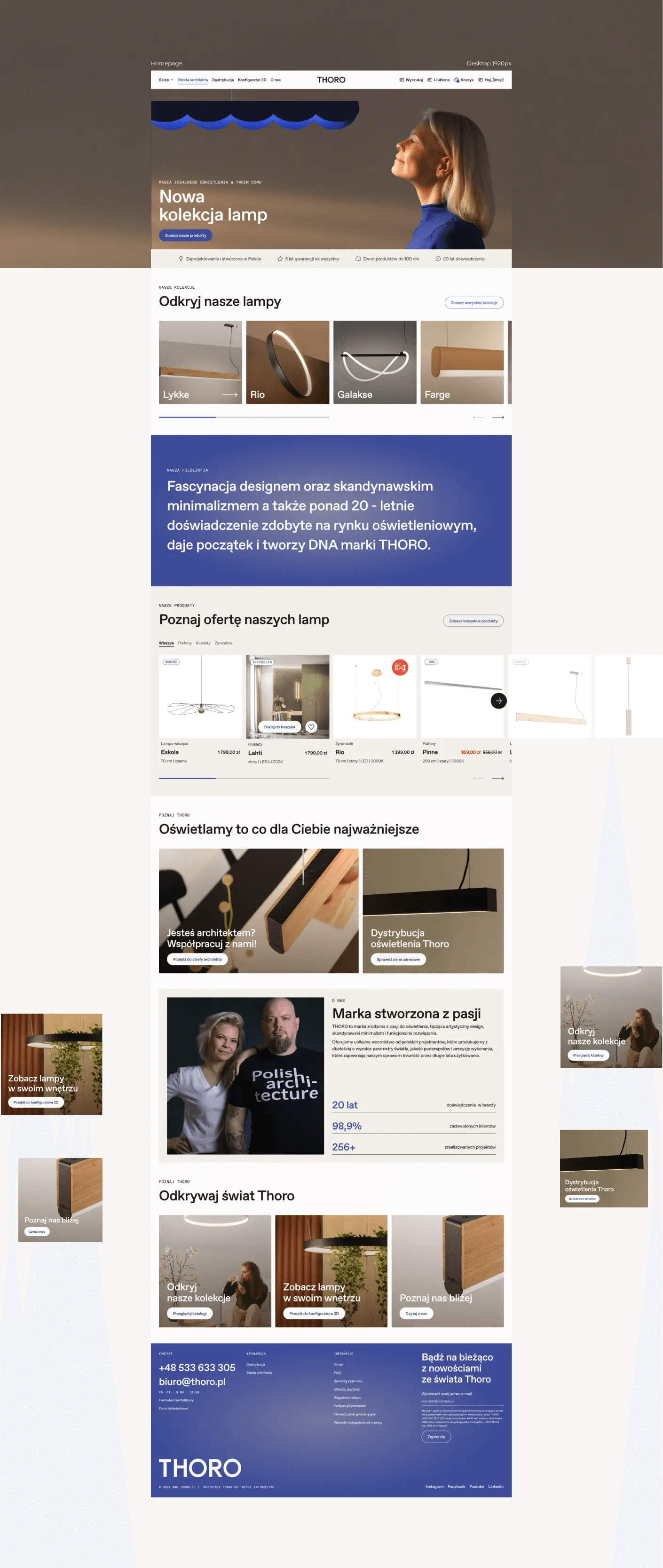 Thoro jest producentem oświetlenia, które łączy minimalistyczny design z najwyższą jakością wykonania. Naszym zadaniem było wdrożenie redesignu sklepu internetowego Prestashop, w oparciu o przekazany projekt UX/UI i istniejącą infrastrukturę sklepu.
