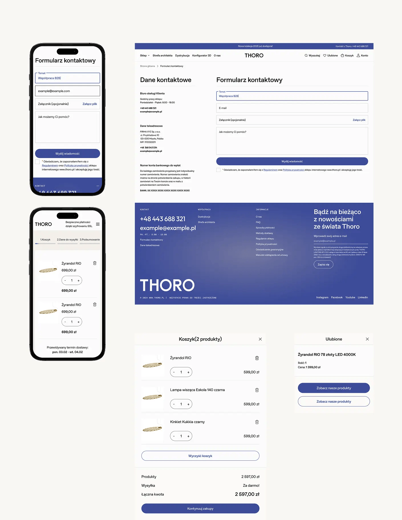 Nowy wygląd sklepu Thoro zakodowaliśmy na podstawie projektu dostarczonego przez klienta. Wymagało to precyzyjnego odzworowania widoków desktop i mobile, wraz z dostosowaniem funkcjonalności do nowych założeń - tak aby całość była spójna i funkcjonalna.